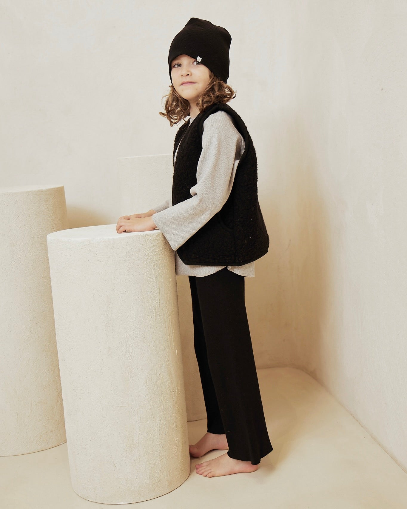 Uniseksowe, szerokie spodnie wykonane z prążkowanej bawełny, z surowym wykończeniem. Połącz z naszą prążkowaną bluzą lub cardiganem, aby uzyskać super wygodny look na co dzień.