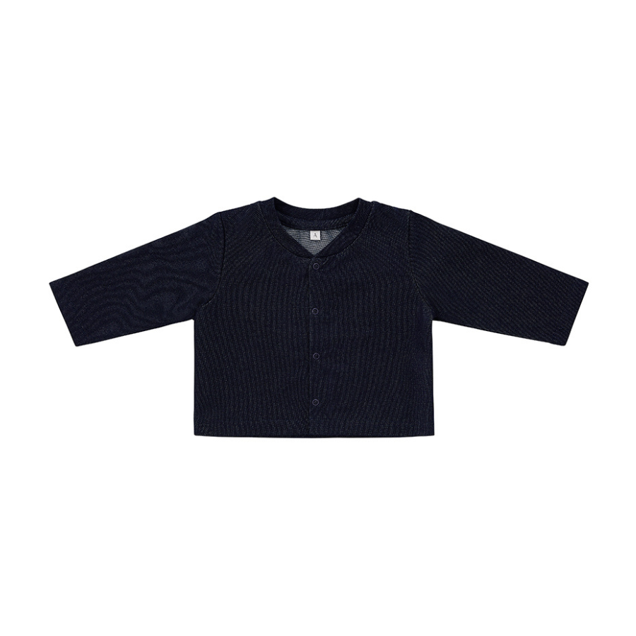 This basic cardigan is a perfect easy-going outer layer. Crafted from a great soft denim cotton. Opens fully with small snaps. The most simple design in basic color.