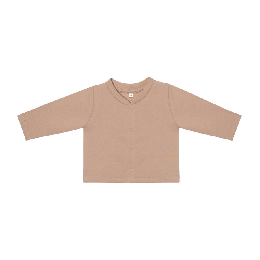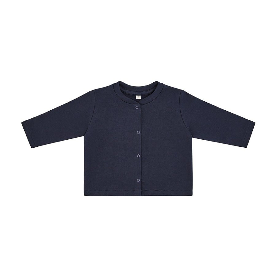 This basic cardigan is a perfect easy-going outer layer. Crafted from an ultra cosy thin cotton fleece, with an incredible soft touch - the softest possible fabric for your childs delicate skin. Opens fully with small snaps. The most simple design in basic colors.